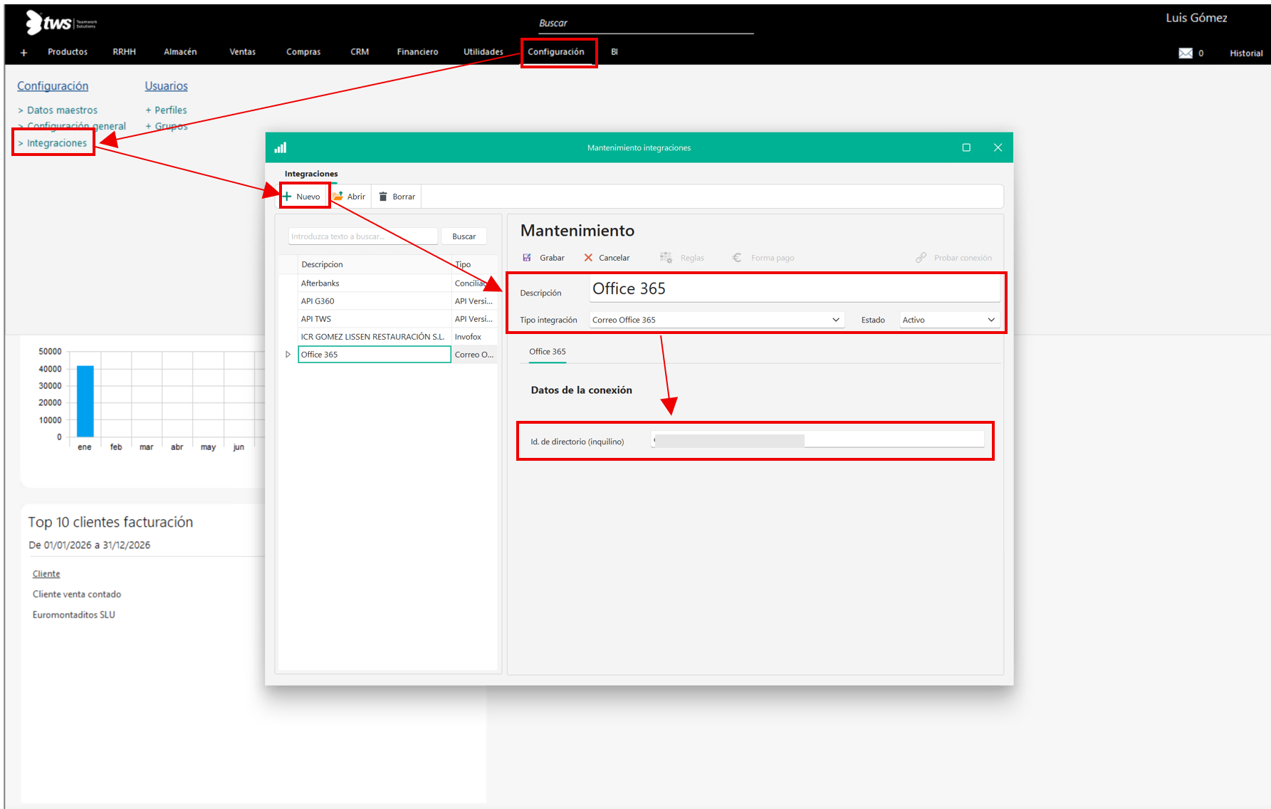 Para integrar G360 ERP con una cuenta de Office 365, será necesario realizar 3 pasos: