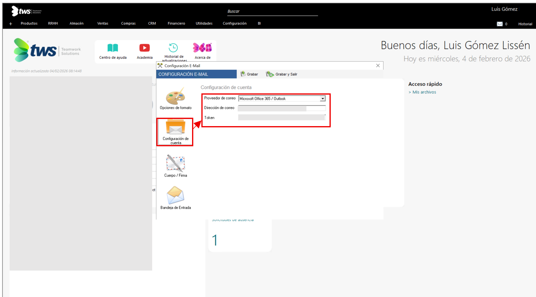 Para configurar nuestra cuenta de Office 365 en G360 ERP, necesitaremos 3 datos: